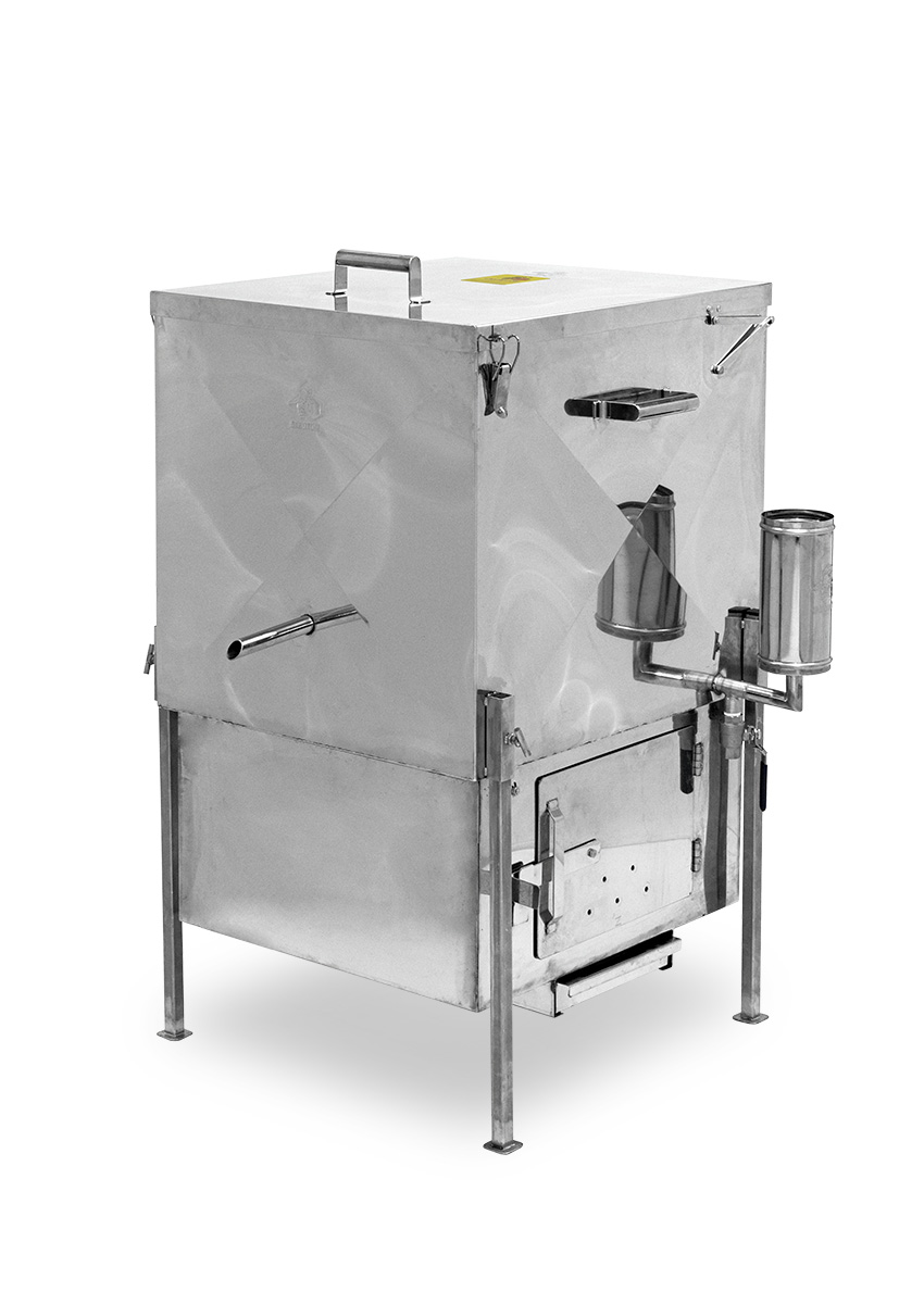 The firebox is also made of INOX 304 sheet metal 1 mm thick, with the bottom of the firebox made of INOX 304 sheet metal 2 mm thick to prevent overheating.